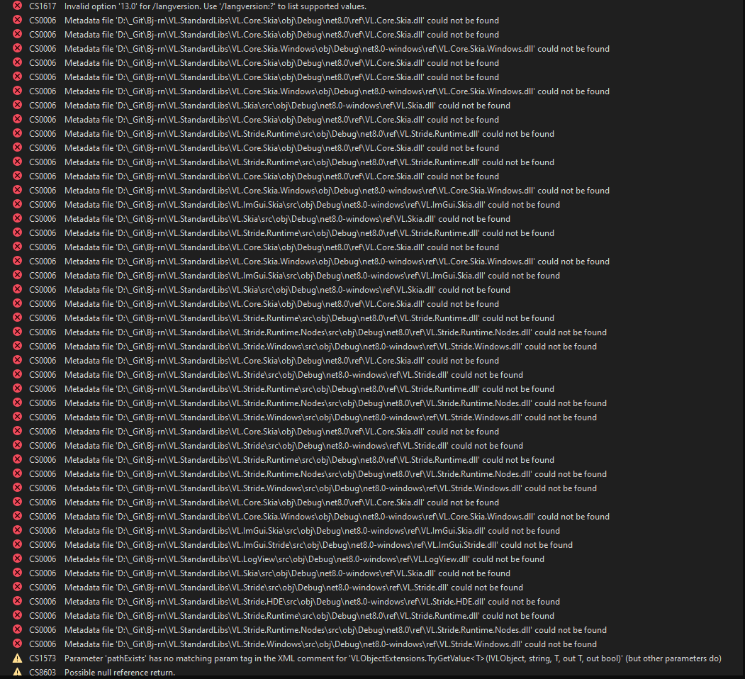 Error (active) CS0006 Metadata file ‘D:_Git\Bj-rn\VL.StandardLibs\VL.Core.Skia\obj\Debug\net8.0\ref\VL.Core.Skia.dll’ could not be found VL.Stride.Windows D:_Git\Bj-rn\VL.StandardLibs\VL.Stride.Windows\src\CSC 1