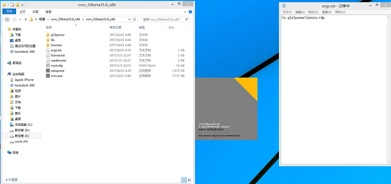 I don`t understand what the "args.txt"mean. So I only have this picture and this is the status of my vvvv now.Remove that line you have on right notepad screen