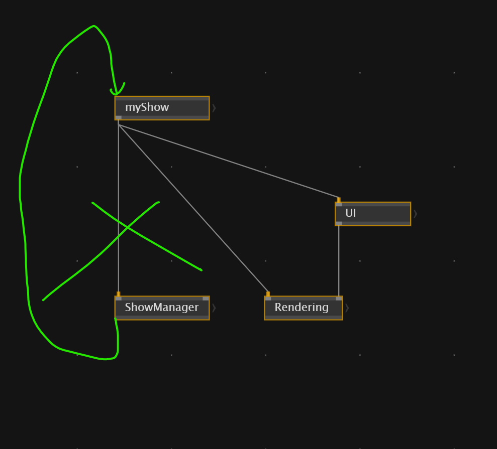 Show manager is a Service, it should be connected other way around: