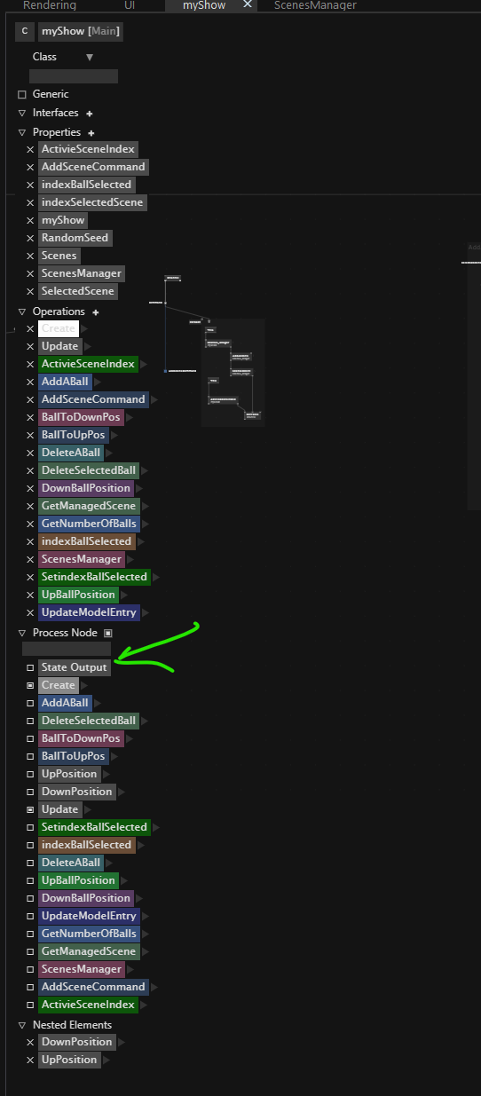 - A show that contains scenes, that output a selected scene and an index of this selected scene
