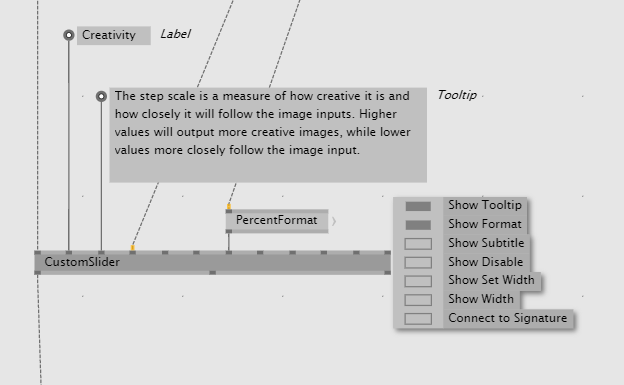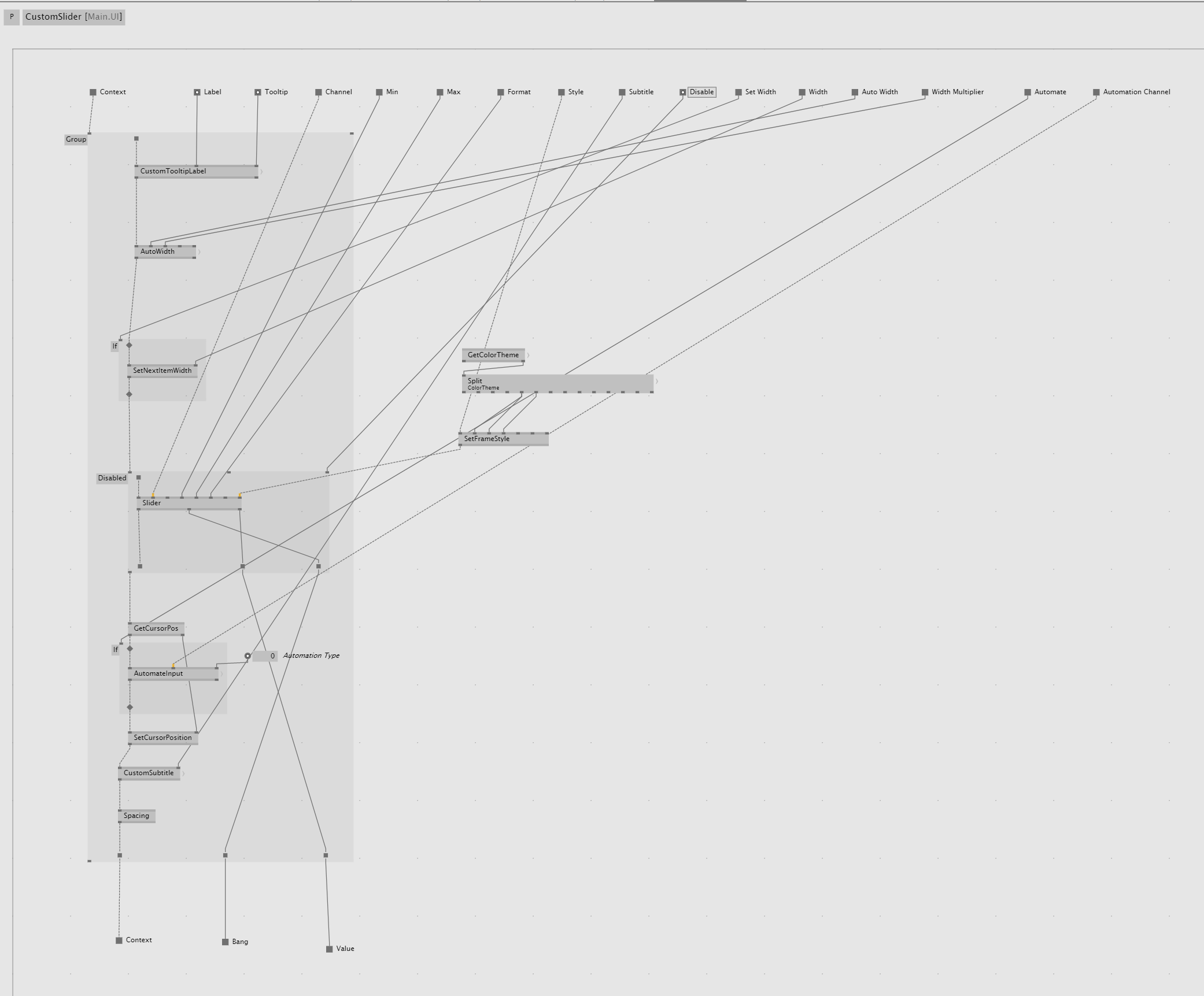What Sebescudie said. Also, pro tipp: Make yourself process nodes for all the common UI elements you use with ImGui. Then you can add all these options to it and re-use it everywhere. Like mentioned above I wrapped the slider in a disabled region to be able to disable it easily if I need: