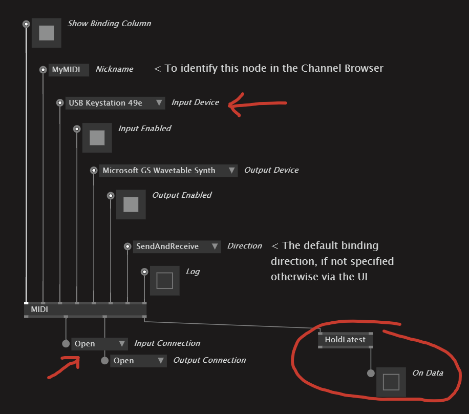 but also can you please try this: Open the helppatch: HowTo Bind Channels to MIDI via the Channel Browser, then select the device, see if it opens and add a HoldLatest node to see if you receive any events: