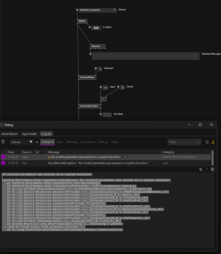 Sanford.Multimedia.Midi.InputDeviceException: An invalid parameter was passed to a system function.