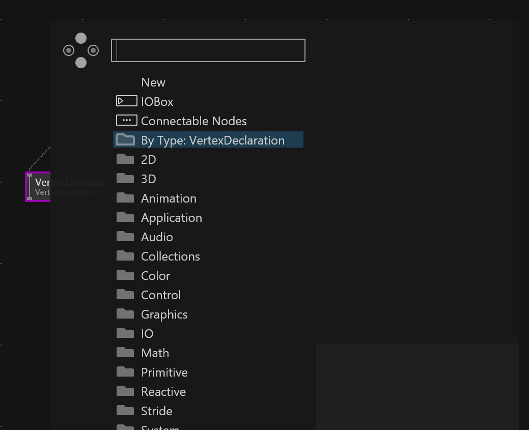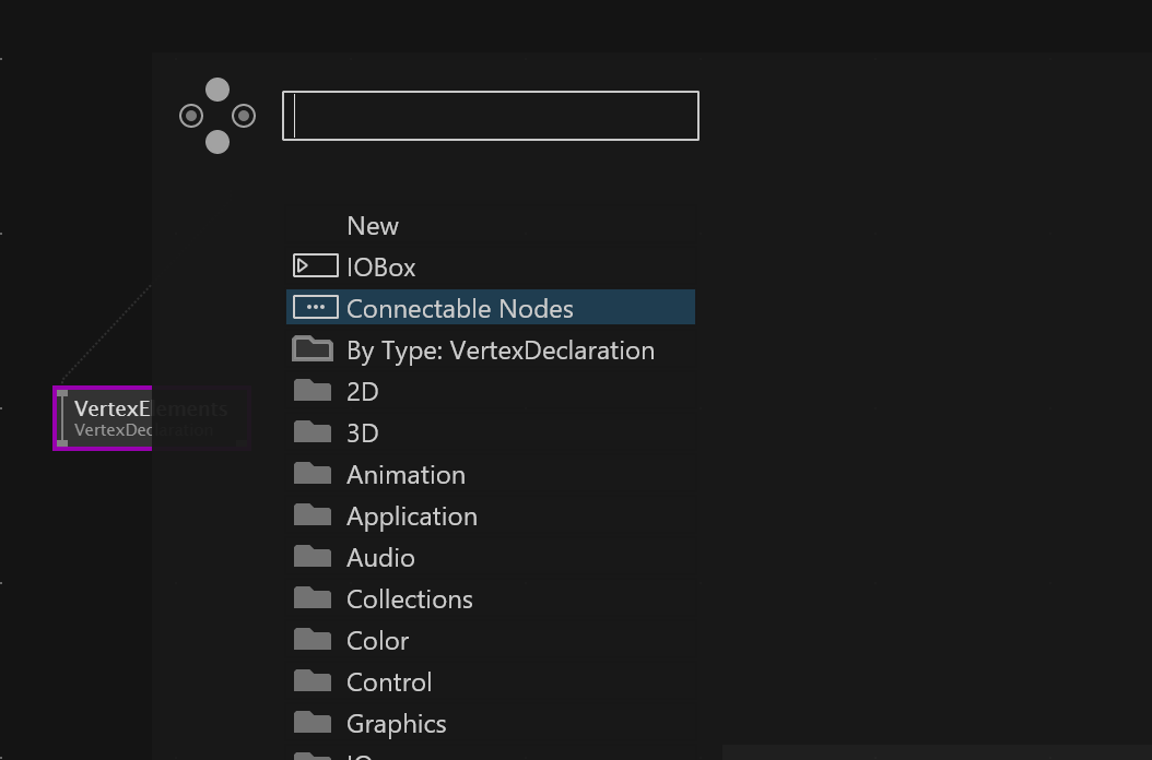 For example, if I have a node that expects an input like “Vertex Declaration”, it would be useful to see a list of nodes that produce that type of output. This would make it much easier to discover compatible upstream nodes. At the moment, I often don’t even know where to start looking…