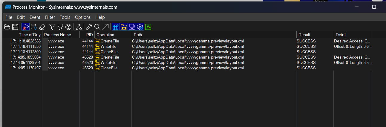 I see that layout.xml got generated only when I quit vvvv. The contents are exactly the same as before. So then where is it reading the layout from if not from layout.xml? Does it get cached anywhere??