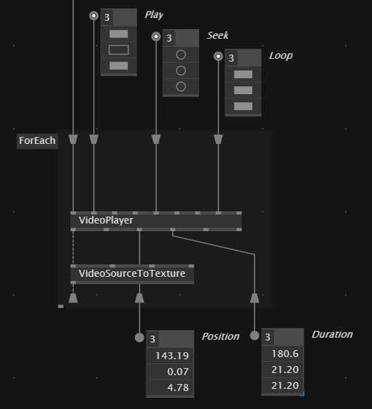 2 : In the original project, I want to change the index of the getslice of each video player, when it reaches the end. But if the videoplayer is in for each loop, I cannot access to each video’s durantion to bang it to the next video.