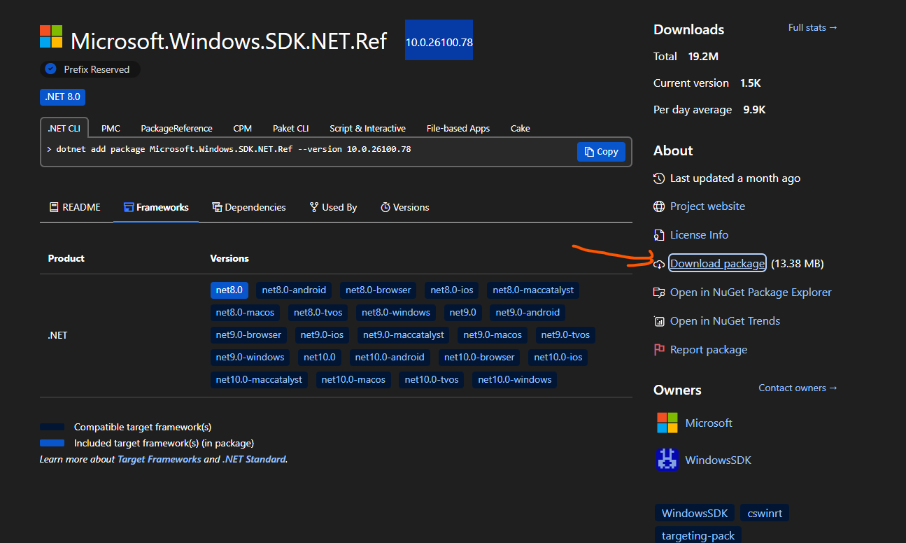 Installing Microsoft.Windows.SDK.NET.Ref via nuget is not possible (‘Package “Microsoft.Windows.SDK.NET.Ref 10.0.26100.78” has a package type “DotnetPlatform” that is not supported by project “C:\Users\USER\AppData\Local\vvvv\gamma-preview\nugets”.’)