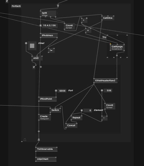 Color Kinetics used to own the patent for RGB led lights, and KiNet was their propriety protocol for controlling them. They are still a big name in architectural lighting. Iām trying to rebuild a patch I made for an installation n 2014 that generated an image to be pixel mapped by a hardware pixel mapping box they made, the installation has gone through 2 of the hardware controllers, while my patch remained fully functional, hats off to vvvv beta! The installation in being refreshed as some of the power supplies and pixels have also failed, and I now need to talk directly to the power supplies. Kinet is different from artnet in that you can send less than a full universe of pixels, and also each power supply can have 2 outputs, called helpfully also called ports.