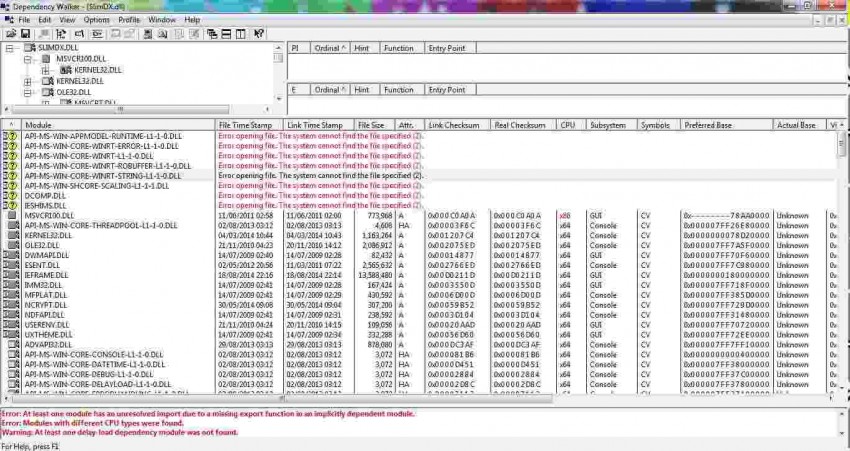 Warning: At least one delay-load dependency module was not found.